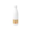 Corps en acier inoxydable en finition blanche mat, avec bande centrale en bambou.
